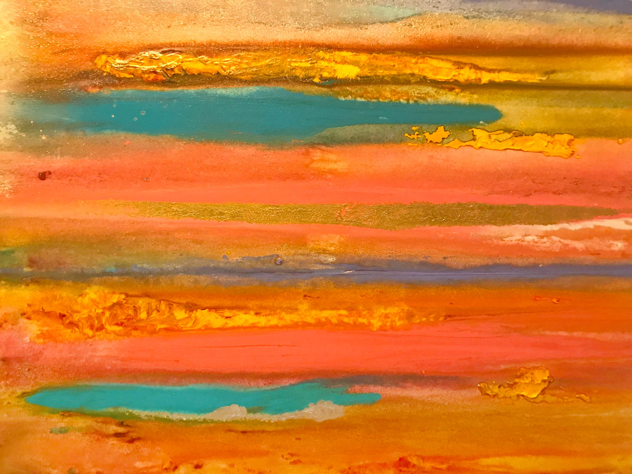 This is an original painting (not a copy or print) and it’s signed & dated on the back by the artist. The sides are painted black and stapled on the back so it’s ready to hang.